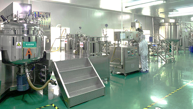 引進國內外先進的乳化設備——50L、100L、150L、300L、500L、1000L等多規格自動計量進料真空乳化鍋,行業領先的乳化設備使制造出的乳液和膏霜的分散性和穩定性都極佳,同時滿足各種不同需求量的訂單生產。